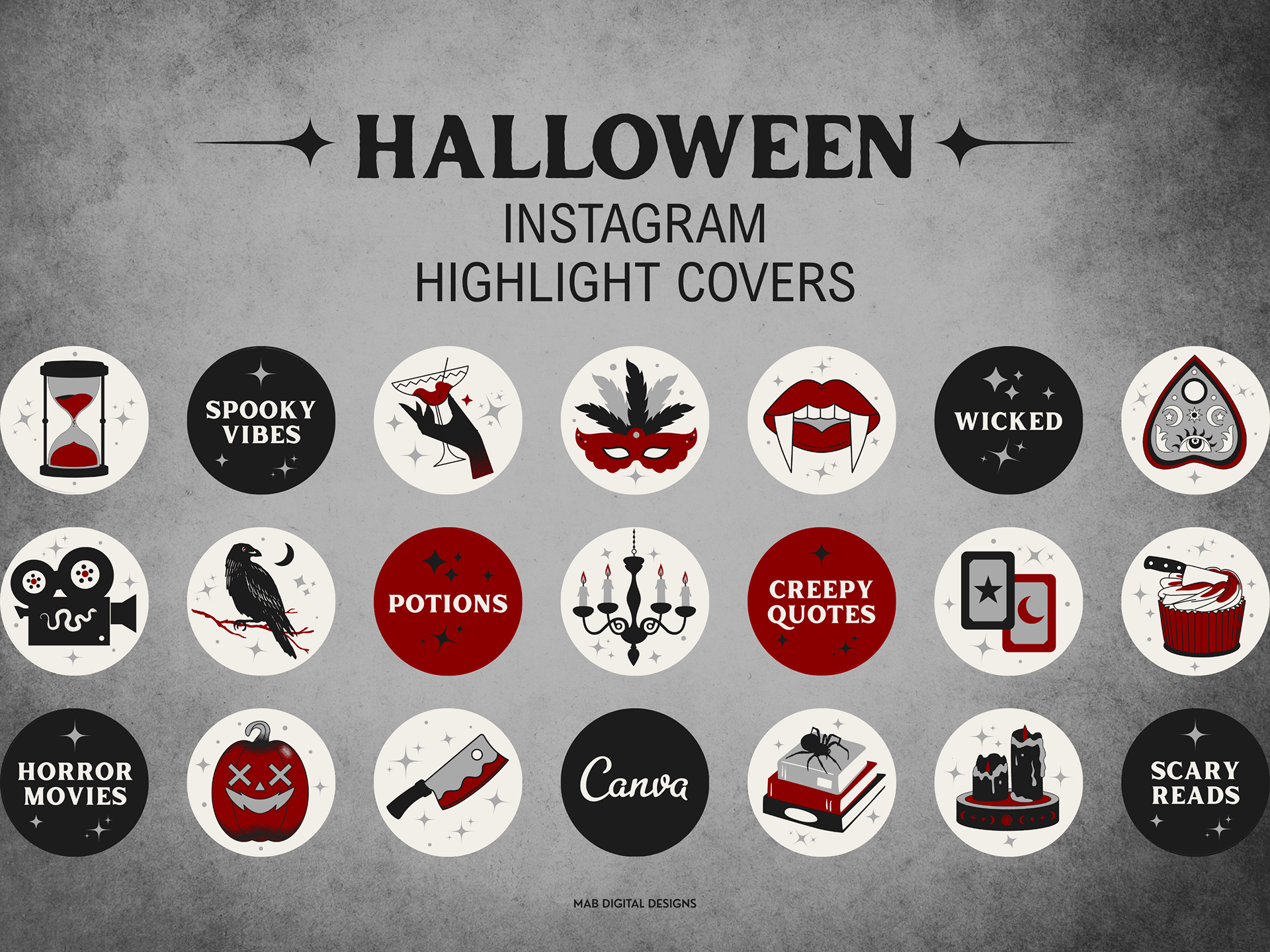 Give your Instagram a hauntingly stylish makeover this October with these Halloween Instagram Highlight Covers. Designed in Canva for easy editing, this set of spooky highlight icons is perfect for content creators, small business owners, and anyone who wants a witchy, gothic, or spooky aesthetic for their Instagram feed. No design skills required! This Halloween Literary Quotes Instagram Canva Template is available for purchase on Etsy as an instant digital download