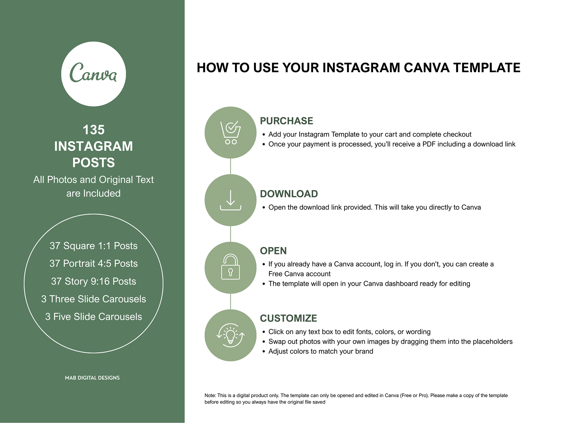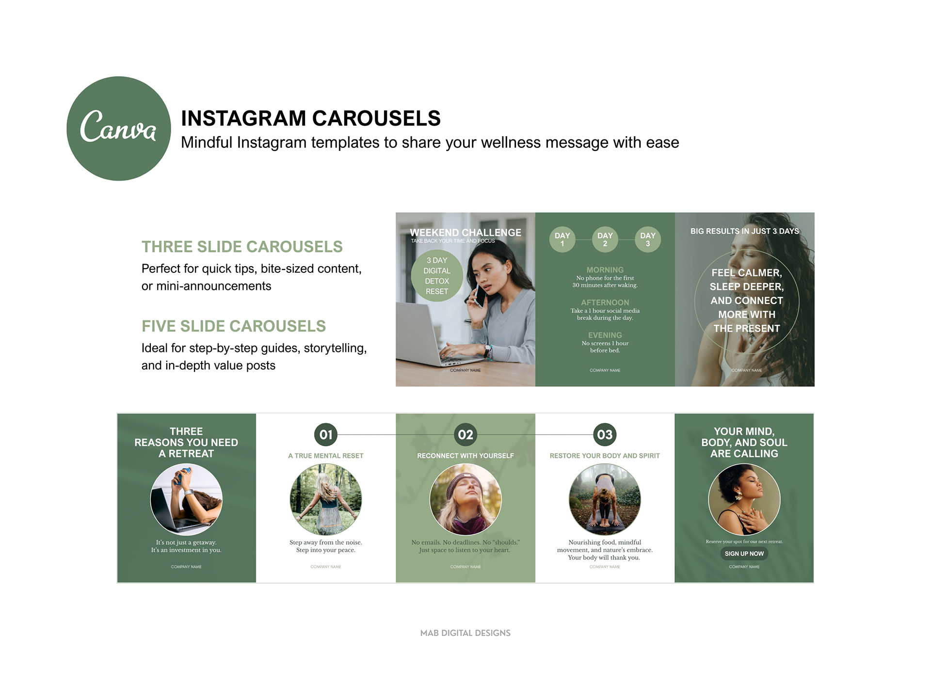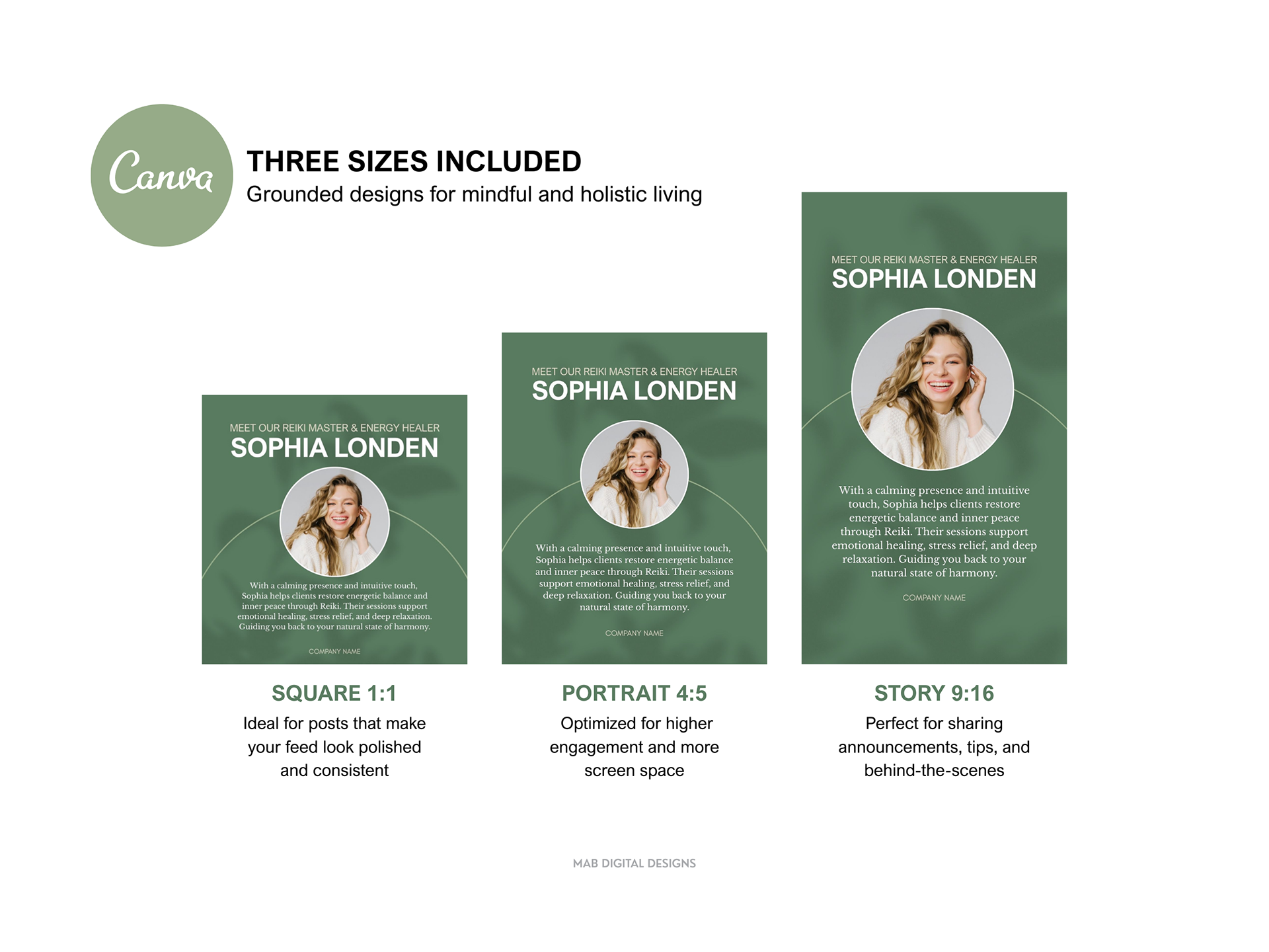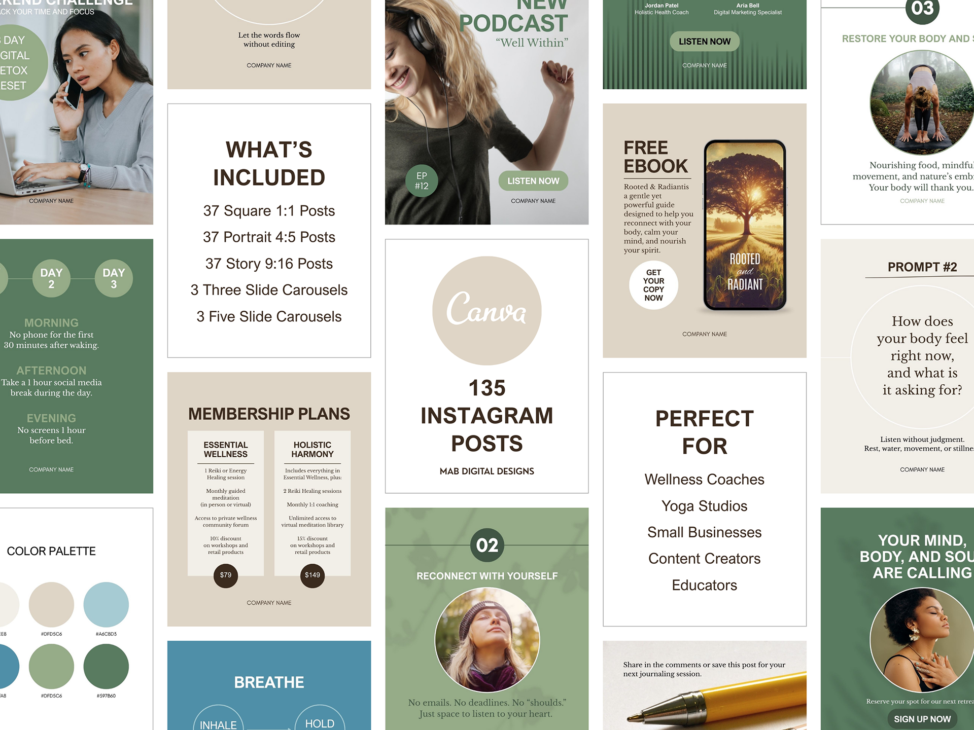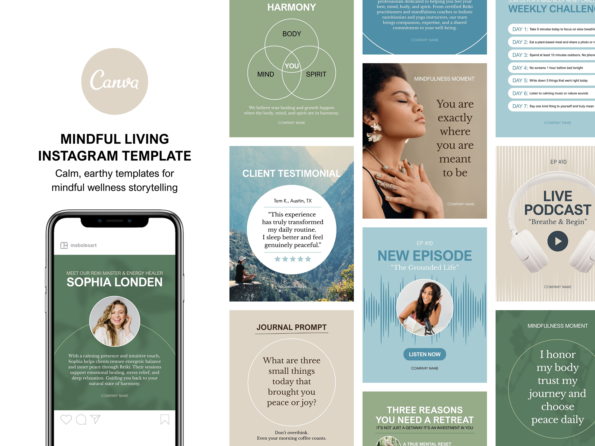 A calming, earth-inspired Instagram Template designed for wellness, holistic health, and mindfulness brands. Featuring soothing blues, grounding greens, and natural browns, this layout is perfect for sharing affirmations, wellness tips, retreats, or lifestyle content. The minimalist, nature-inspired design helps your message feel authentic, peaceful, and aligned with your brand’s values. This Mindful Living Instagram Canva Template is available for purchase on Etsy as an instant digital download